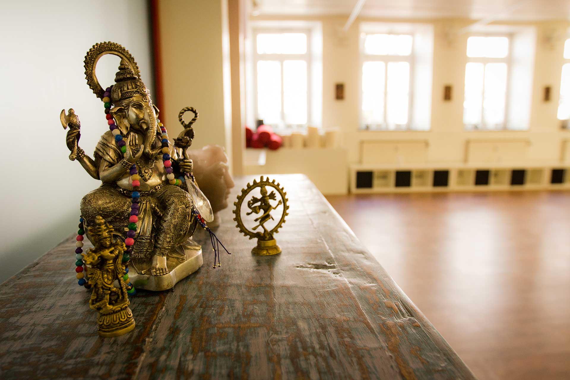 Yogamatten, Sitzkissen, Bolster, Yogablöcke und Decken sind in ausreichender Menge vorhanden. Für Savasana gibt es Augenkissen, zur Unterstützung gibt es Props und für die Sinne ätherische Öle, Raumdüfte und kreative Deko. Wenn du eine eigene Yogamatte besitzt, kannst du diese natürlich mitbringen.